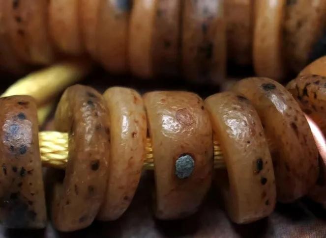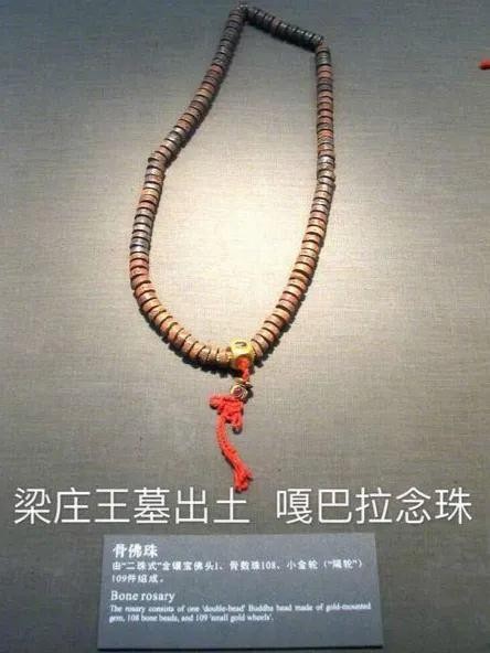 这种用嘎巴拉修行的方式不仅在藏区寺庙,即便是皇家也能见到。下图就是明代梁庄王墓葬出土的嘎巴拉念珠。