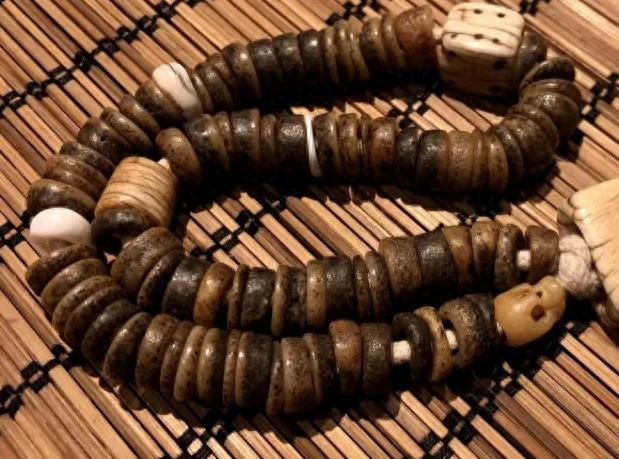 目前藏传文玩市场新的人骨念珠较多,因不如法不能称之为嘎巴拉了,所以感兴趣的朋友一定要小心,不懂得话不要乱碰啊。这些新的念珠散发着尸臭味,很恶心的,戴在手臂上不仅不能消灾祈福,倒可能导致生病的!