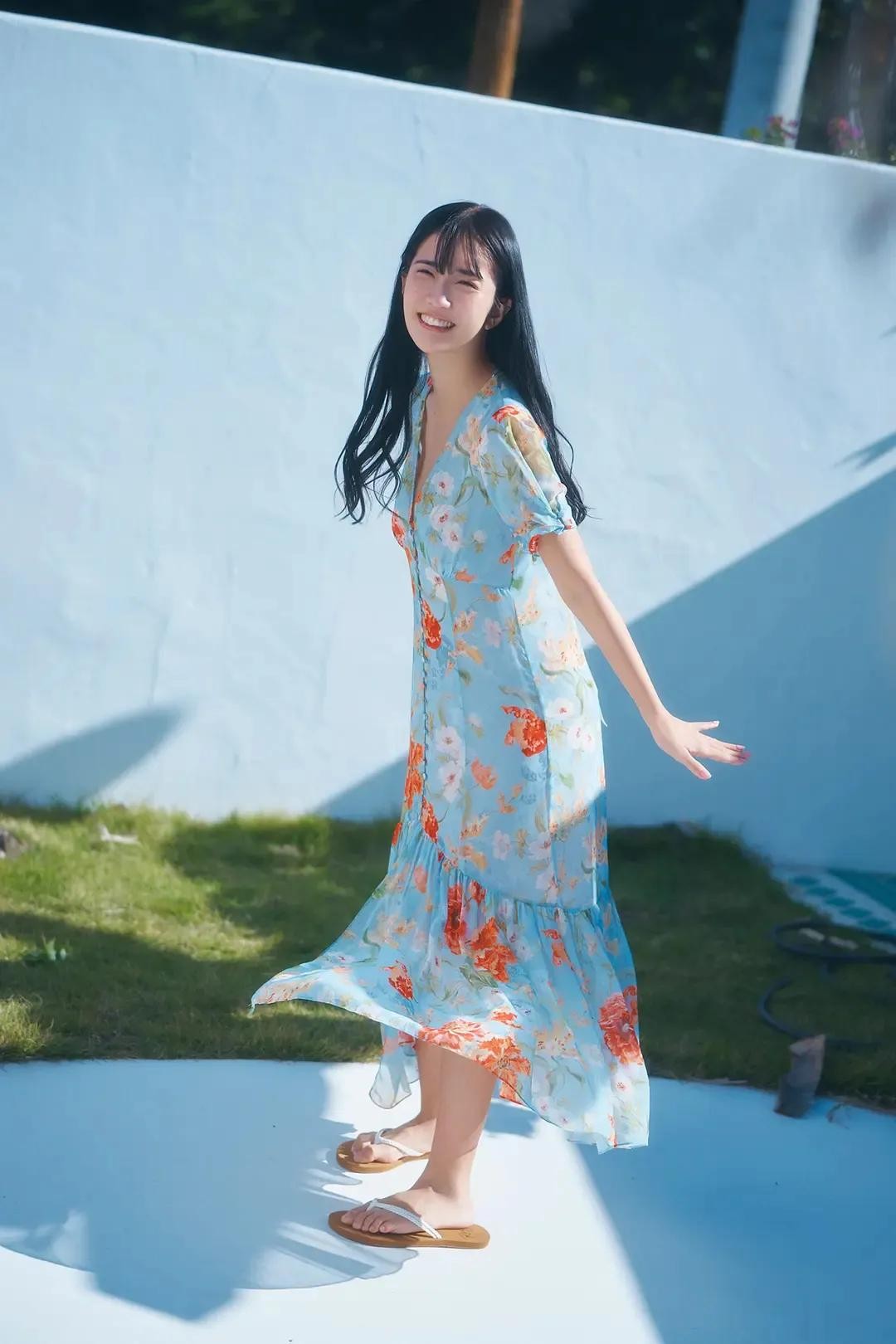 她的脸上洋溢着温暖的微笑,仿佛阳光都被她吸引,特别偏爱地洒在她的脸上,让她看起来更加美丽动人。 她轻轻地伸出手,好像在与大自然进行一场无声的对话,她的眼神中充满了对大自然的热爱和敬畏。
