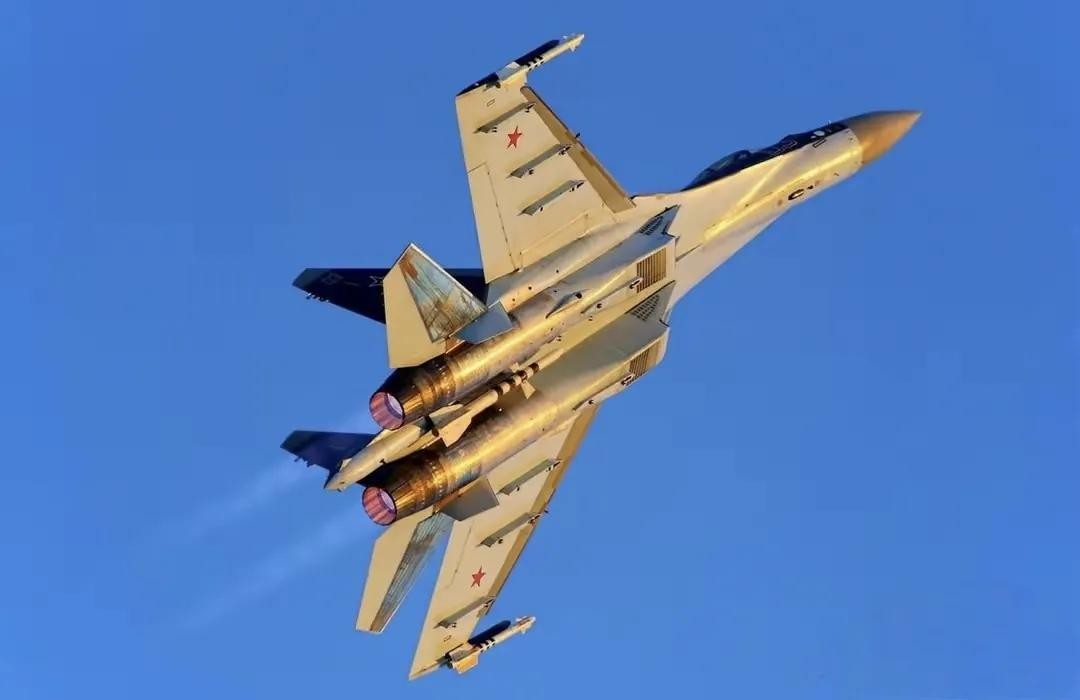 苏-35S战斗机两个进气道与发动机舱连线呈“八”字形