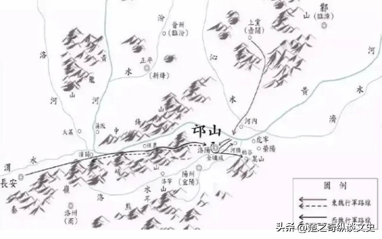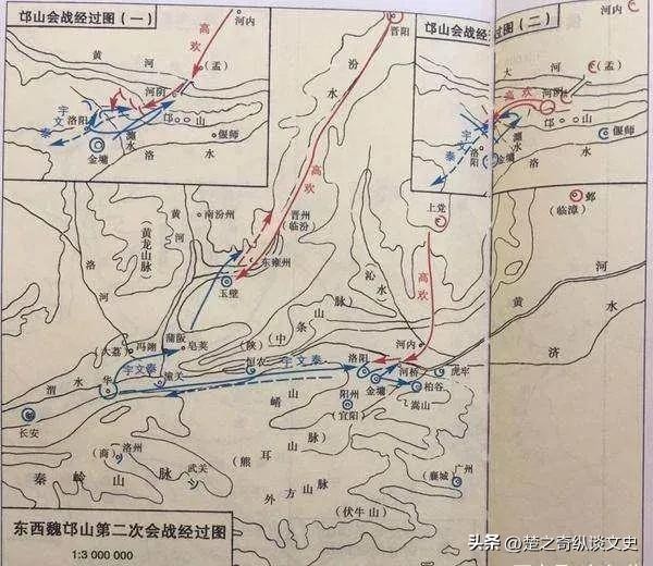 宇文泰把辎重留在瀍(chán)曲(泸水弯曲处),并在深夜,登上邙山,袭击高欢。