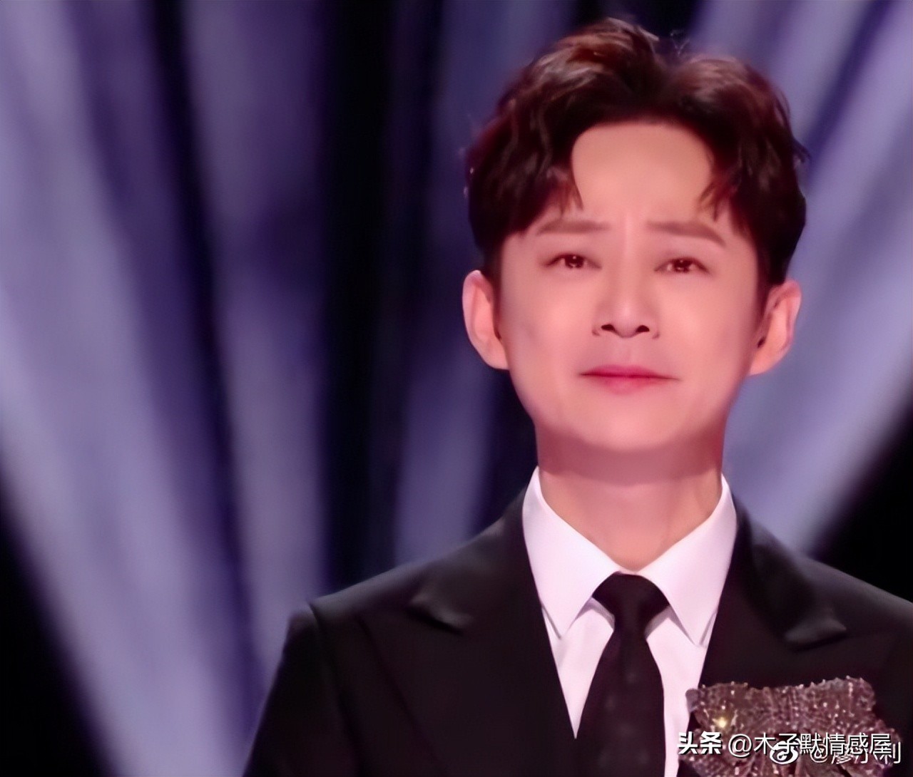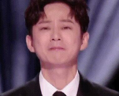 当何炅鞠躬起身后,可以明显看出来他的嘴在努力地憋着,能看出来他一直在努力调整情绪,他想把眼泪憋回去。