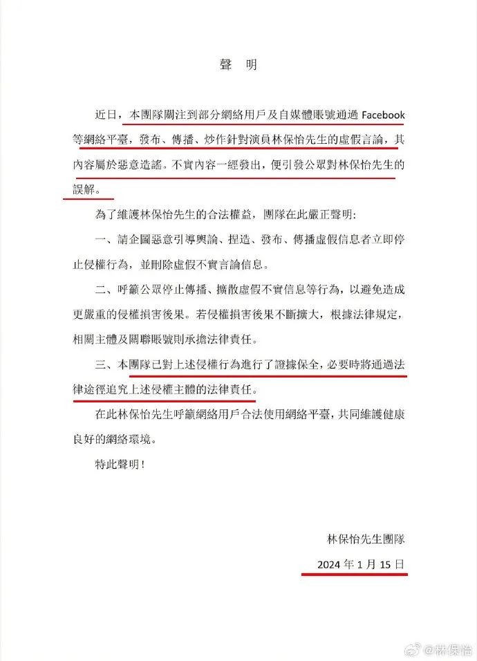 针对某些造谣的媒体自媒体发声明要求别再恶意造谣,保留追究权利。