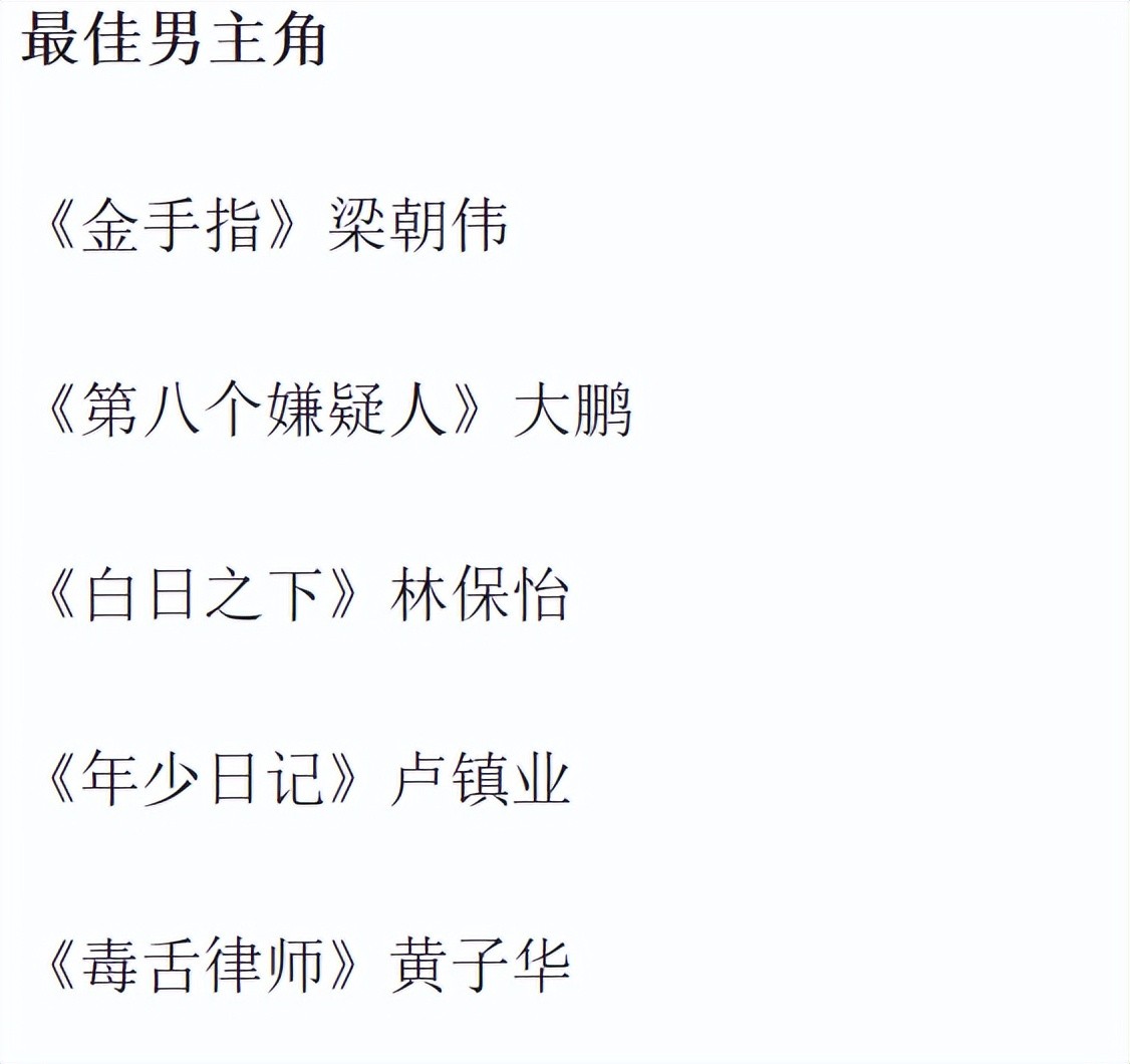 有分分钟刷新金像奖记录的梁朝伟,有内地男演员大鹏,还有大爆口碑电影男主角黄子华。