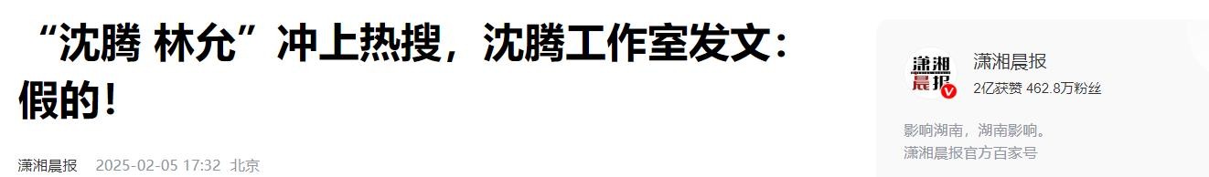 潇湘晨报:“沈腾 林允”冲上热搜,沈腾工作室发文:假的!