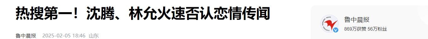鲁中晨报:热搜第一!沈腾、林允火速否认恋情传闻