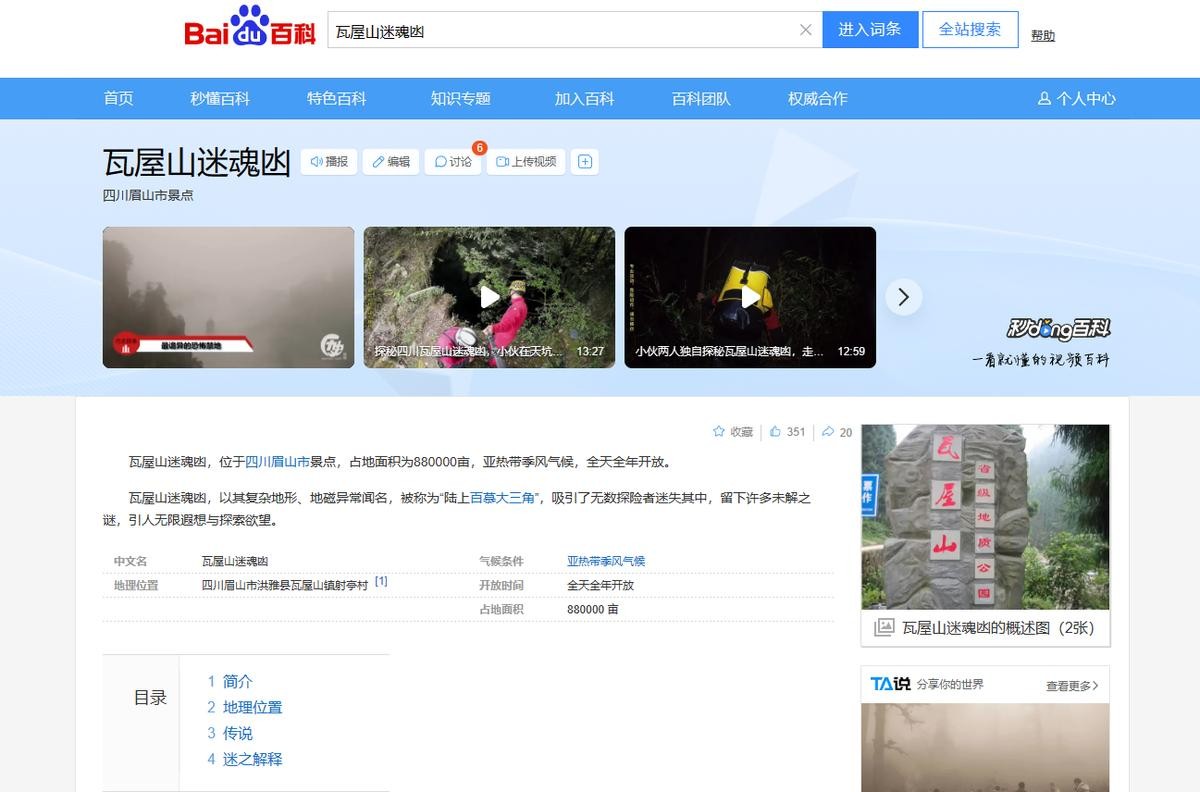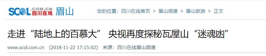 2.走进“陆地上的百慕大” 央视再度探秘瓦屋山“迷魂凼”——四川在线眉山频道,2018年11月22日发布