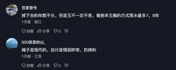 这样就更看不清楚这块玉佩上的花纹了,让许多网友提出质疑,但是该博主却说,没有必要为了拍个视频就要大费周折,更何况天仍然还是亮的。