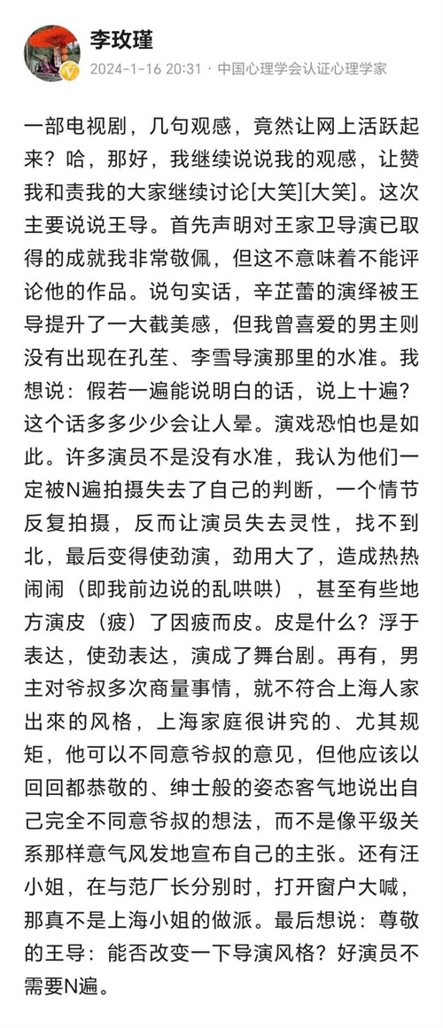 就这样,原本是一件小到不能再小的事情,不过是评论一下大家都能看都可以评的电视剧,却让李玫瑾到了严重翻车的地步。