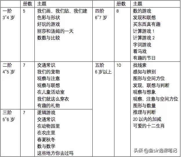 在这里,我也以幼儿阶段的网络版为例,为大家罗列了它各个阶段的书册主题内容: