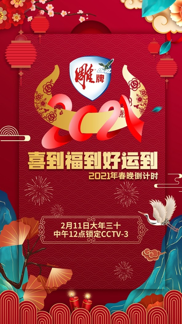 2021年春晚倒计时特别节目——《喜到福到好运到》将在2月11日(大年三十)与观众见面,节目从中午12点开始直播,将持续8个小时陪伴观众欢乐守岁。春晚人气嘉宾将在节目中率先亮相,在其乐融融的氛围中与大家共同期盼牛年春晚的到来。