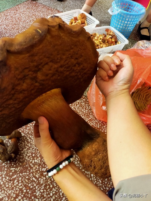 鸡枞是一种非常奇特的菌子,它的巢穴就是白蚁的窝,两者共生,缺一不可。它的美味也是大家公认的,味道鲜甜,好吃度~五星。