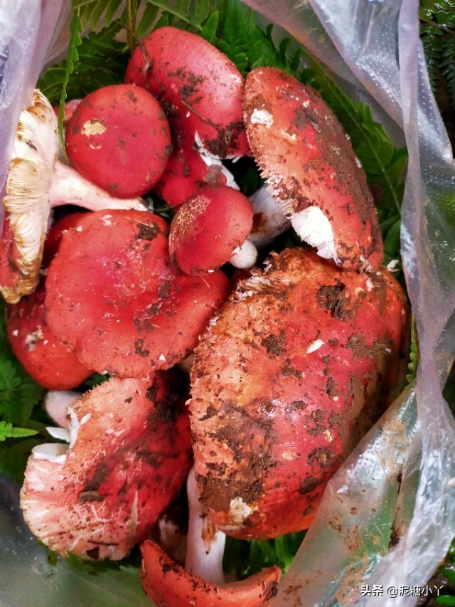 红葱菌也是见手青里的一种,这种菌子帽子是红色的,帽檐下偏黄,看上去颜色鲜艳夺目,是所有杂菌中最好吃的一种,不过这种菌子毒性很大,没炒熟的话,很容易中毒。