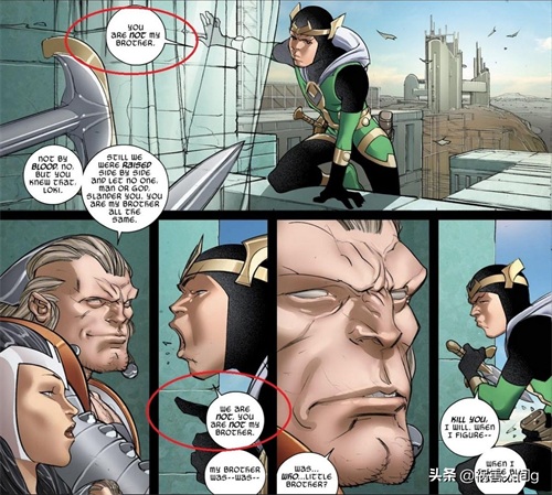 少年洛基曾经抱着托尔痛苦,他告诉托尔如果自己变得邪恶就让托尔杀死自己,但是被托尔拒绝,托尔说自己永远不会放弃自己的兄弟。