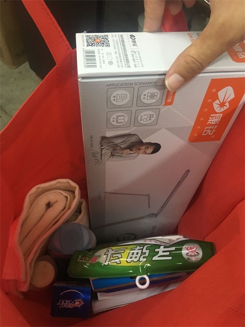 新生报到的第一天,南师大“绿色通道”保障家庭特别困难学生顺利入学,实现“入学不用愁”。而每位来“绿色通道”的同学,将会收到几份特别的礼物——“爱心午餐”餐券、南师定制地铁卡以及“圆梦南师”实用卡套。记者在现场看到,满载爱心的大礼包里不仅包含了笔记本、签字笔等学习用品,还包括LED灯、拉线板、洗漱用品等生活用品。