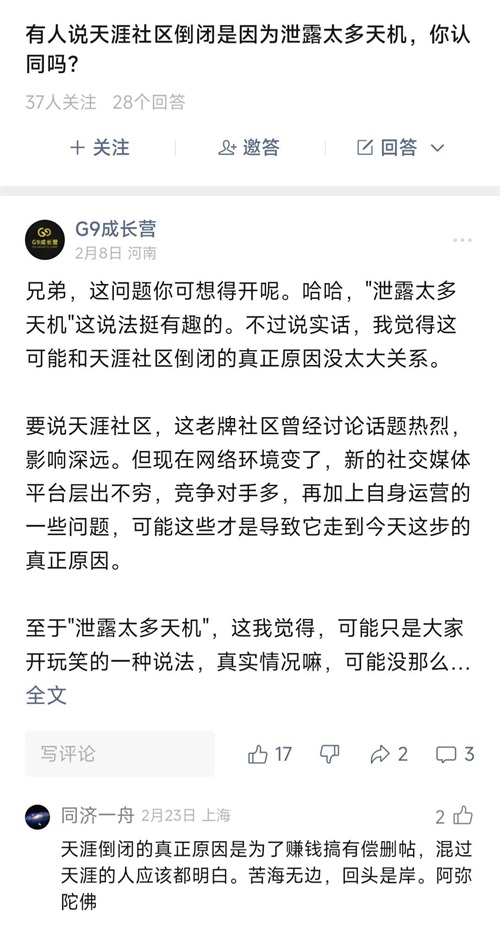 现在是知识付费时代。有很多网友都在讨论天涯论坛为什么会倒闭?是不是泄露了太多天气?