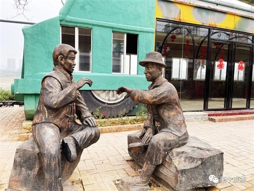 南宁市江南公园在园内设置了多处老工厂物件的摆设,南宁市绢纺厂、啤酒厂、电视机厂、糖厂、铝厂……昔日的老工厂工作场景在这里重现,让人找回往昔的青春岁月。