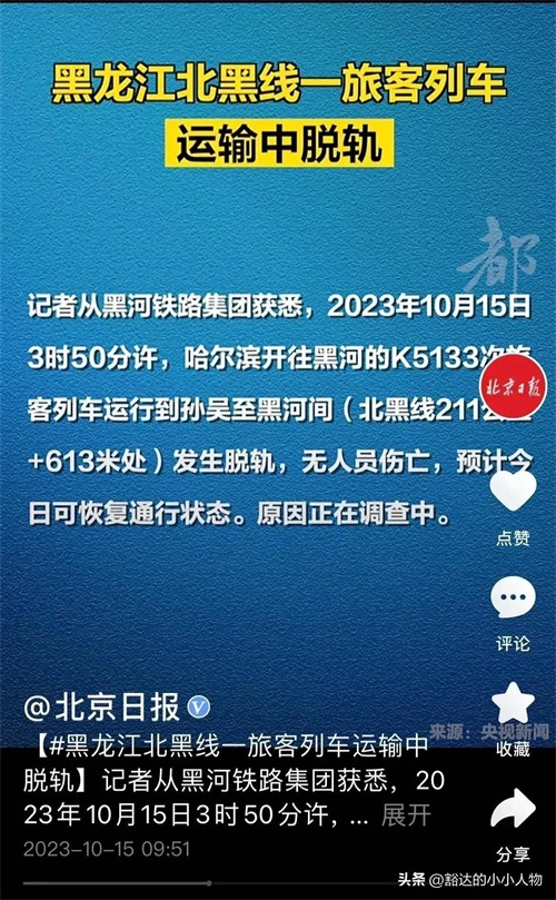 惊心动魄!黑龙江一载人火车脱轨,场面惨烈,事故原因曝光