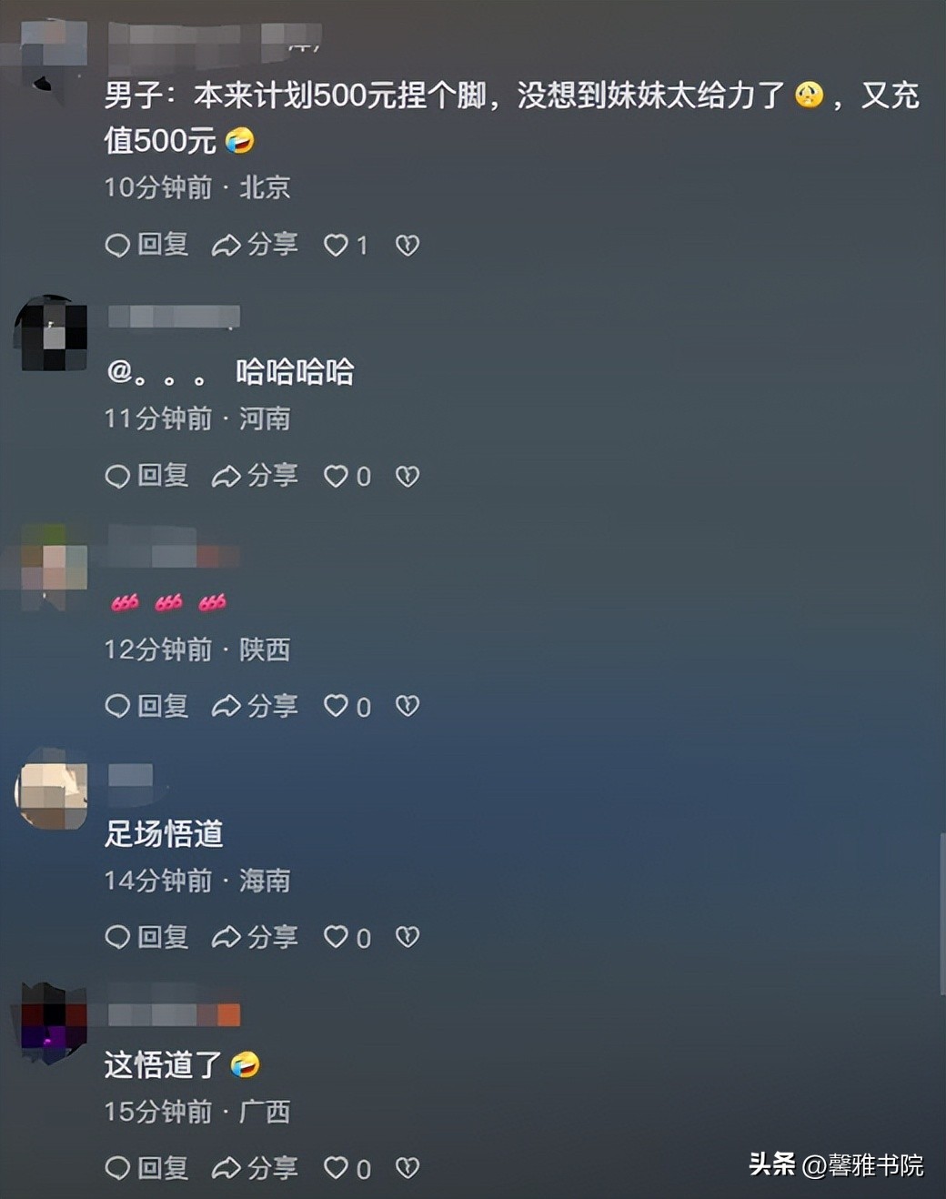 点赞最多的这个网友真是让人笑不活了,这么调侃,说洗了个脚人都升华了。