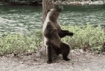 虽然这样的熊看起来每天都很有活力,但是这么一个庞然大物的胃口可是不小哦,棕熊是一种杂食性的动物,就是什么都能吃,不挑食好喂养,小到植物的根茎,蚂蚁,大到鱼类和其他的一些动物的肉都是他的“美味”。