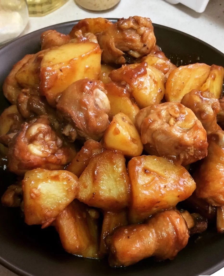 4个大鸡腿炖土豆,鸡肉嫩滑,土豆软烂,一人吃一盘,吃了还想吃