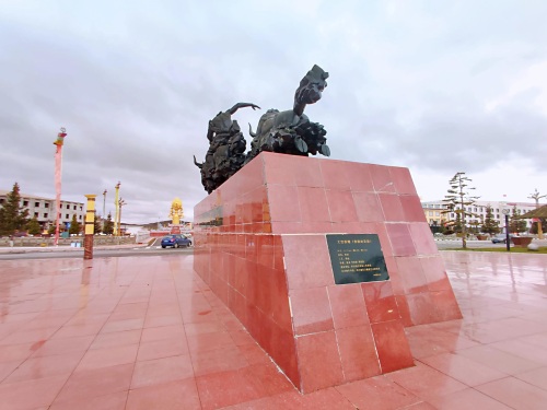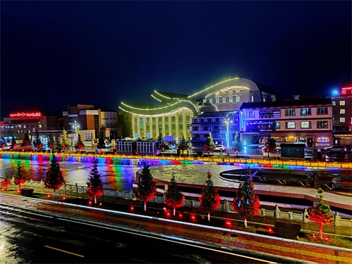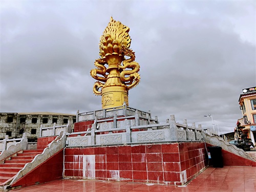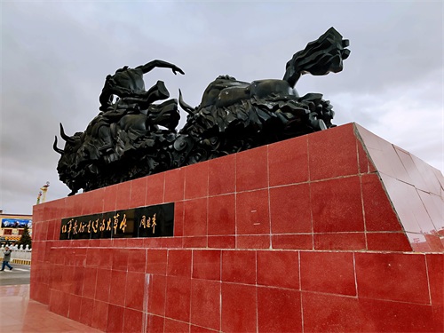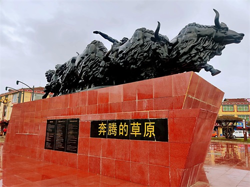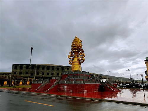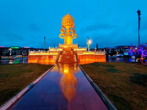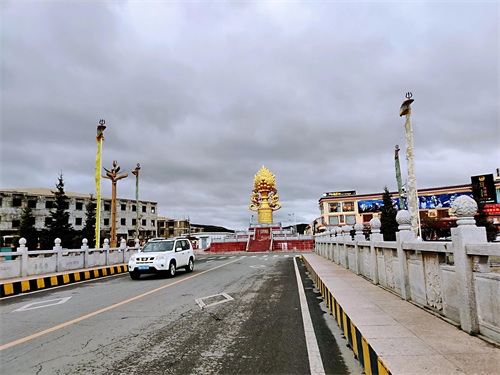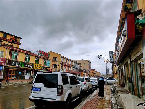 红原县城是阿坝州县城海拔高度最高,达3504米。县城地标即是奔腾的草原雕塑和瑞相塔,夜晚,下起冷雨来,寒风扑面,气温直跌几度。华灯初上,染得塔身和城市光亮而美丽,让人不得不叹服时代在此的巨变。
