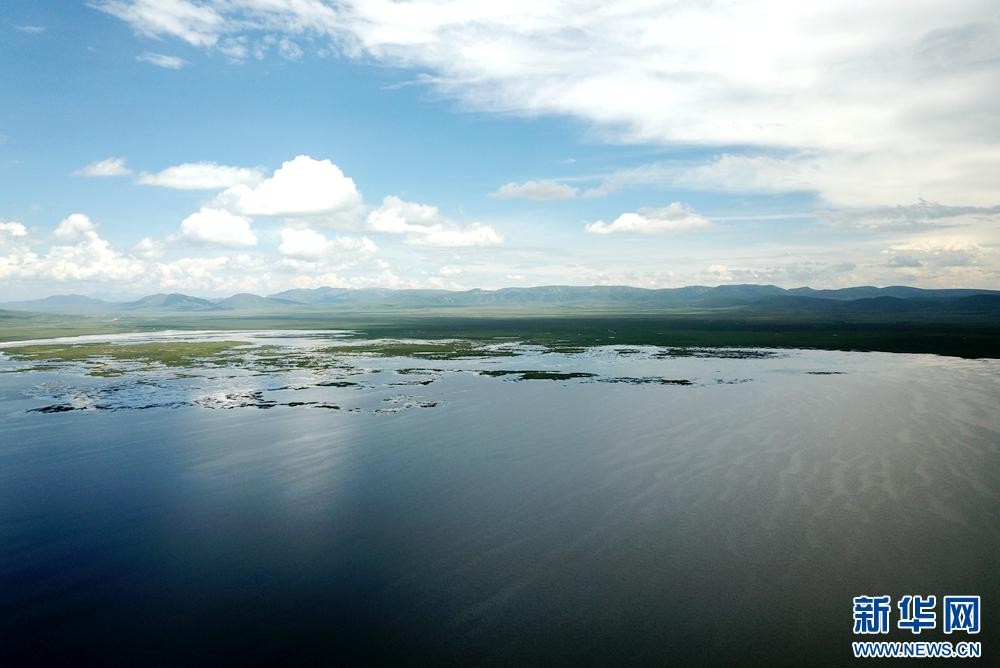 夏日的尕海湖,烟波浩淼,水天一色。湖面上,鸟飞鱼跃,波澜壮阔。尕海湖位于甘肃省甘南藏族自治州碌曲县境内,是青藏高原东端的高原湿地,黄河上游支流洮河的重要水源补给区。近年来,甘肃尕海则岔国家级自然保护区尕海保护站实施湿地禁牧补偿、生态修复和环境治理等项目,尕海湖水域面积不断扩大,湿地生态系统日趋完善。新华网(王生元 摄)