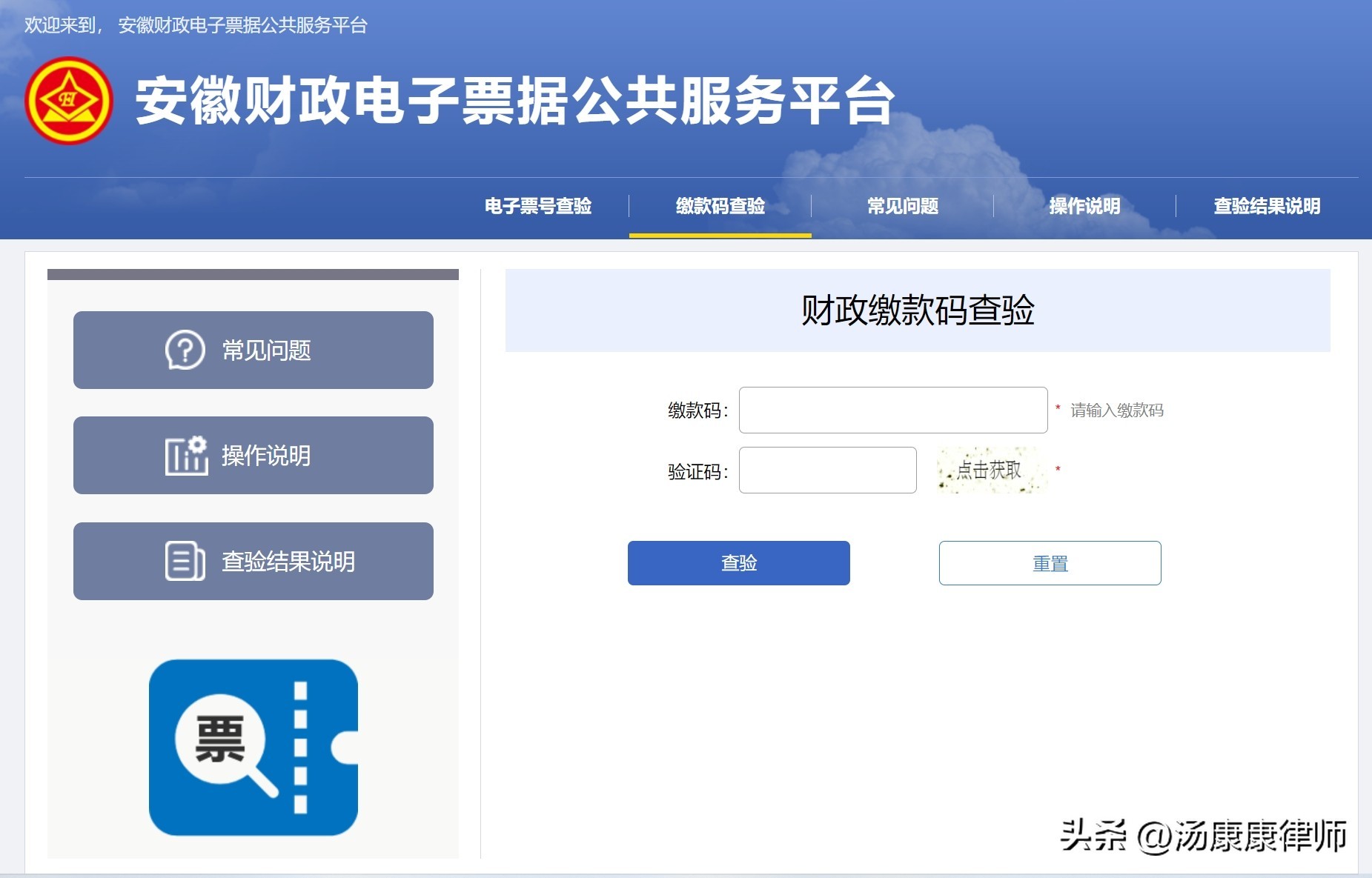 进入公共服务平台首页后,选择“缴款码查验”,出现下图