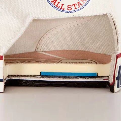 在今年的新系列里,这个支线在 Chuck Taylor 的鞋垫和鞋底之间加入了一层海绵橡胶,组成新的鞋跟构造,这么说也许不太直观,我找了两张对比图,各位感受一下。
