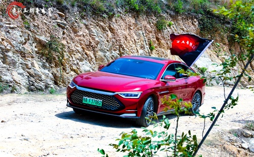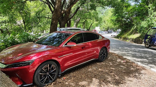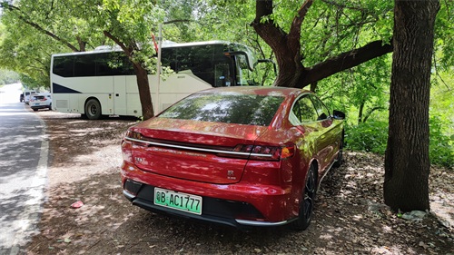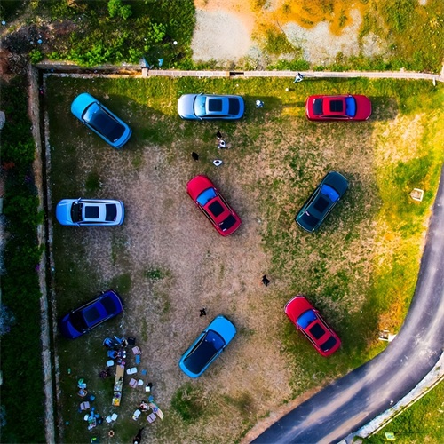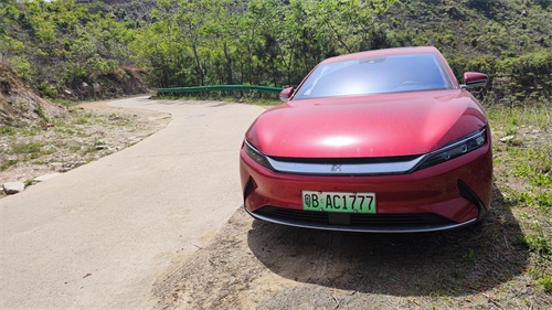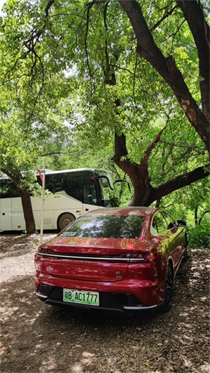 红色的车绿色的背景格外耀眼