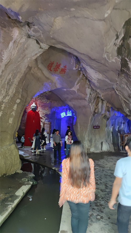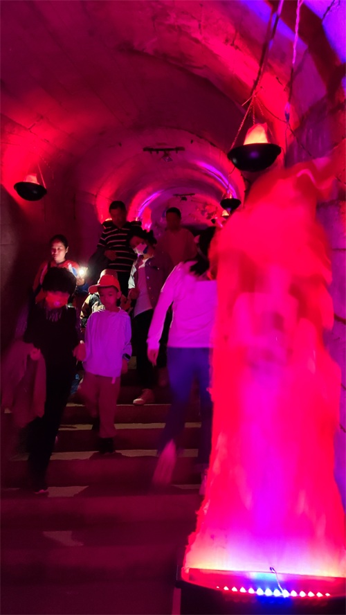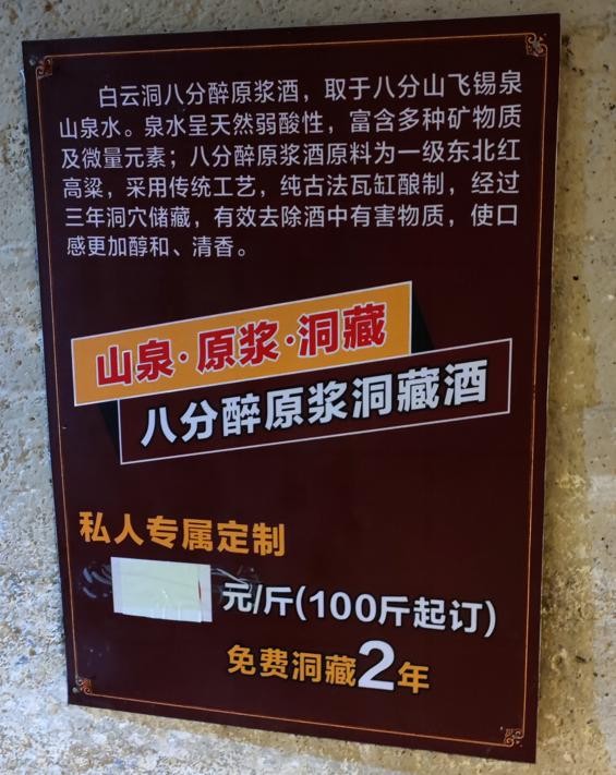 白云洞总体来说不是很大,分为2个支洞,一曰水帘洞,入口处用很多现代灯光装饰,幽暗的洞穴看着还是很神奇,穿过4处不同的灯带,来到第2个主题,鬼屋,周围黑漆漆,然后放置了几个假骷髅人,气氛还是有点吓人的。小朋友是能吓到,适合小情侣,可以借口抱紧些。最后一个就是白云洞的洞穴酒窖,白云洞洞内常年十几度,非常凉爽,适合储存白酒,还有白酒品尝处,如果觉得好,也可以定制一坛老酒托管在洞中。