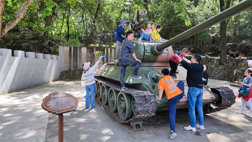 穿过洞穴,来到后面的广场,布置了一些小孩的游乐设施,小朋友可以玩下。后面的重点参观区域就是国防陈列馆,很多以前战争时期的枪炮实物展览。我也是第一次看到巨大无比的炮弹。革命先辈的不容易,俄罗斯和乌克兰现在打了几年,还是如火如荼,劳民伤财,没有一个强大的国家后盾,不知道要被多少美国列强欺负。专家们不要在家里斗了,那怕出去骂几句也是好的,要么是折腾老百姓的,要么是我们怎么不如人的奴才言论,教育培养的都是什么人。高端学府都往外送人才,何必呢。白眼狼。我们这些没有本事的也只能在家当键盘侠四处唠叨几句。