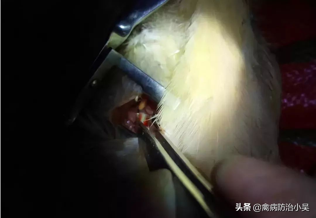 (4)阉割后不能握住鸡的两翼,这样容易造成气肿,更不能使鸡头下垂,否则易造成口腔出血。