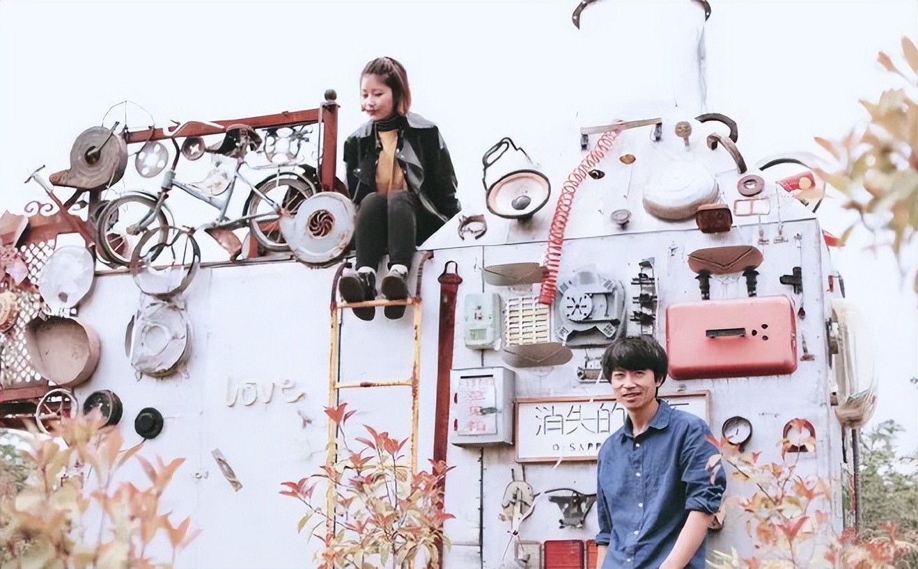 在北京的日子里,靠着馒头白开水生活,晚上住塑料泡沫上,但在他的心里还有一个艺术梦,因为小时候也喜欢捣鼓组装东西,他还靠着废弃的车子零件办了自己的个人艺术展。