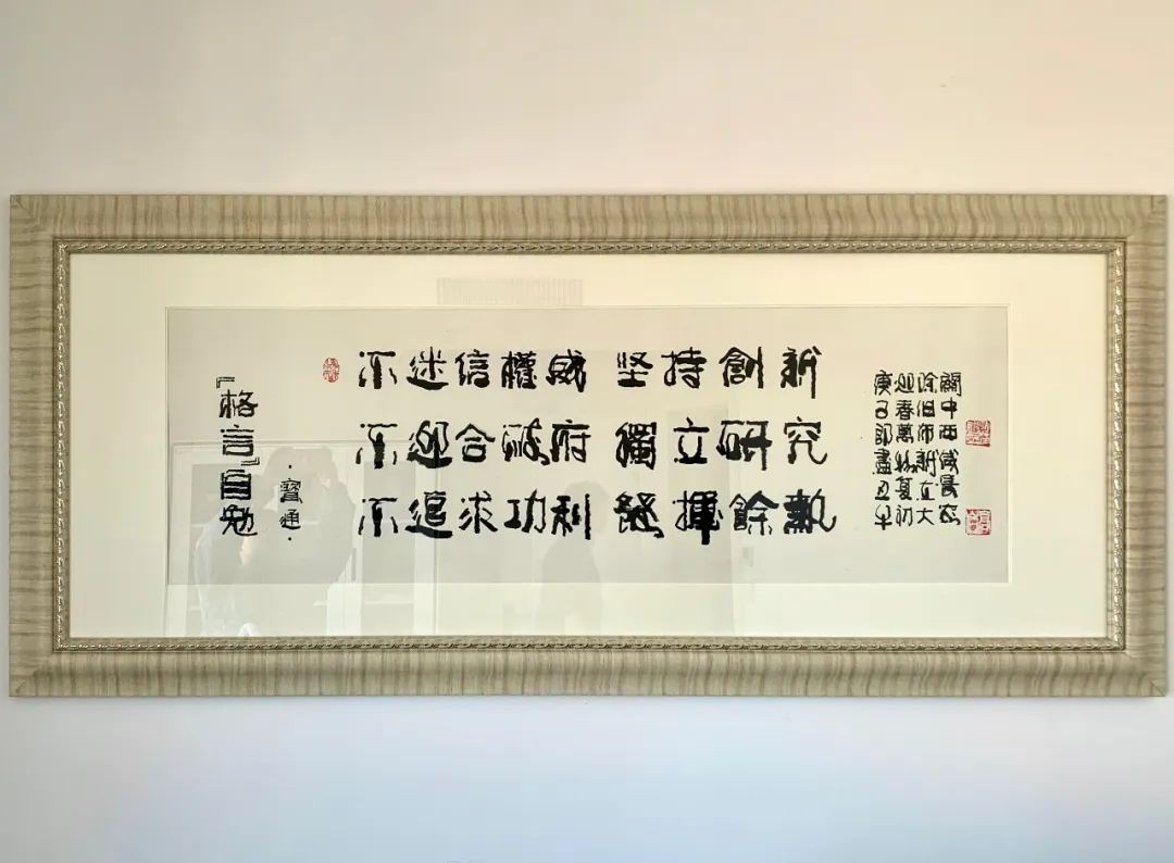 第二辐字:“不迷信权威,坚持创新;不迎合政府,独立研究;不追求功利,发挥余热。”