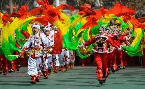 旧时,男队人人白羊肚手巾包头,着青褂或翻穿皮袄,手持牛尾刷,系长系腰,脚登红穗头棉线麻鞋。女队人人着一色艳装,系围裙或彩绣护襟,脚登绣花鞋,手提小灯笼。如今,男女队着装不再拘泥于传统,可紧随时代,但必须做到整齐划一。 在行进中不断变化队形。