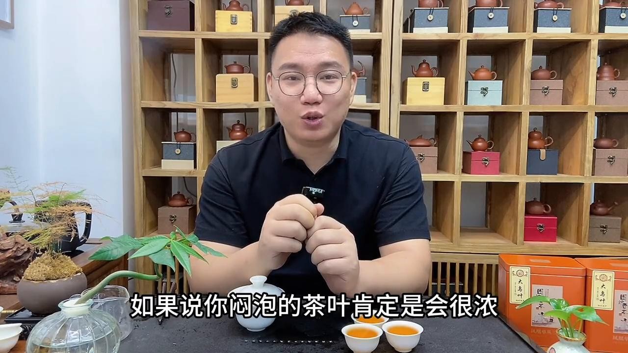 如果说你闷泡的茶叶肯定是会很浓。当然不同茶类的出汤时间也不一样。像这个铁观音,虽然都是乌龙茶,但是它是球状的,茶叶舒展没有那么快。所以铁观音可以适当的闷泡一下,闷泡个二三十秒再出汤,滋味会更加的醇甘。那么这样合理的闷泡自然也算不上是浓茶。