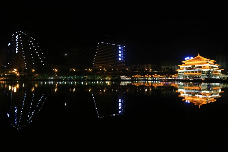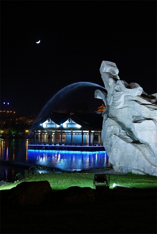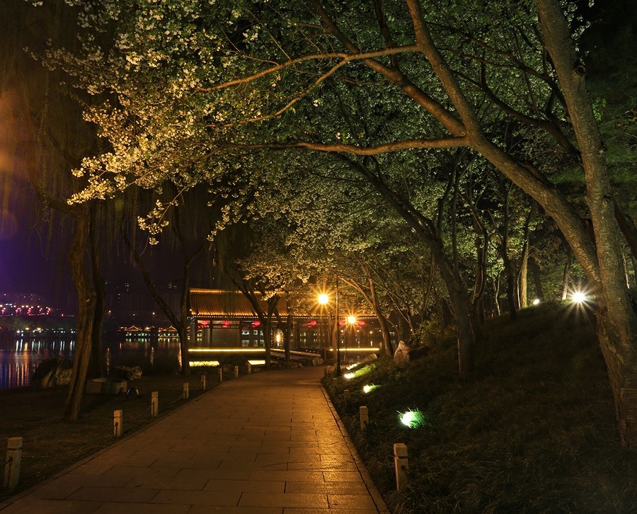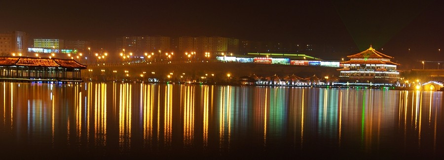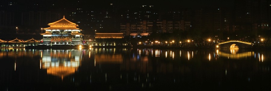 南湖全景,其实不全,仅仅是一小部分。一是天黑,二是视角原因,看不全咯