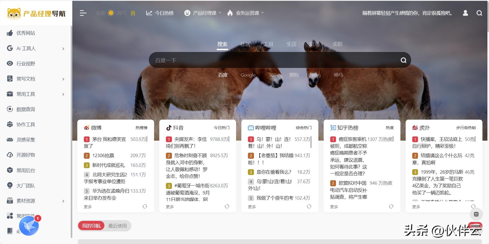 一款定位产品经理、运营、设计师的导航网站。收录了产品、运营、交互设计、用户体验、行业资讯、数据分析、电子商务、产品运营必备工具、国外优秀网站等相关网站。每个网址质量都不错。属于是产品运营设计岗的收藏强推。