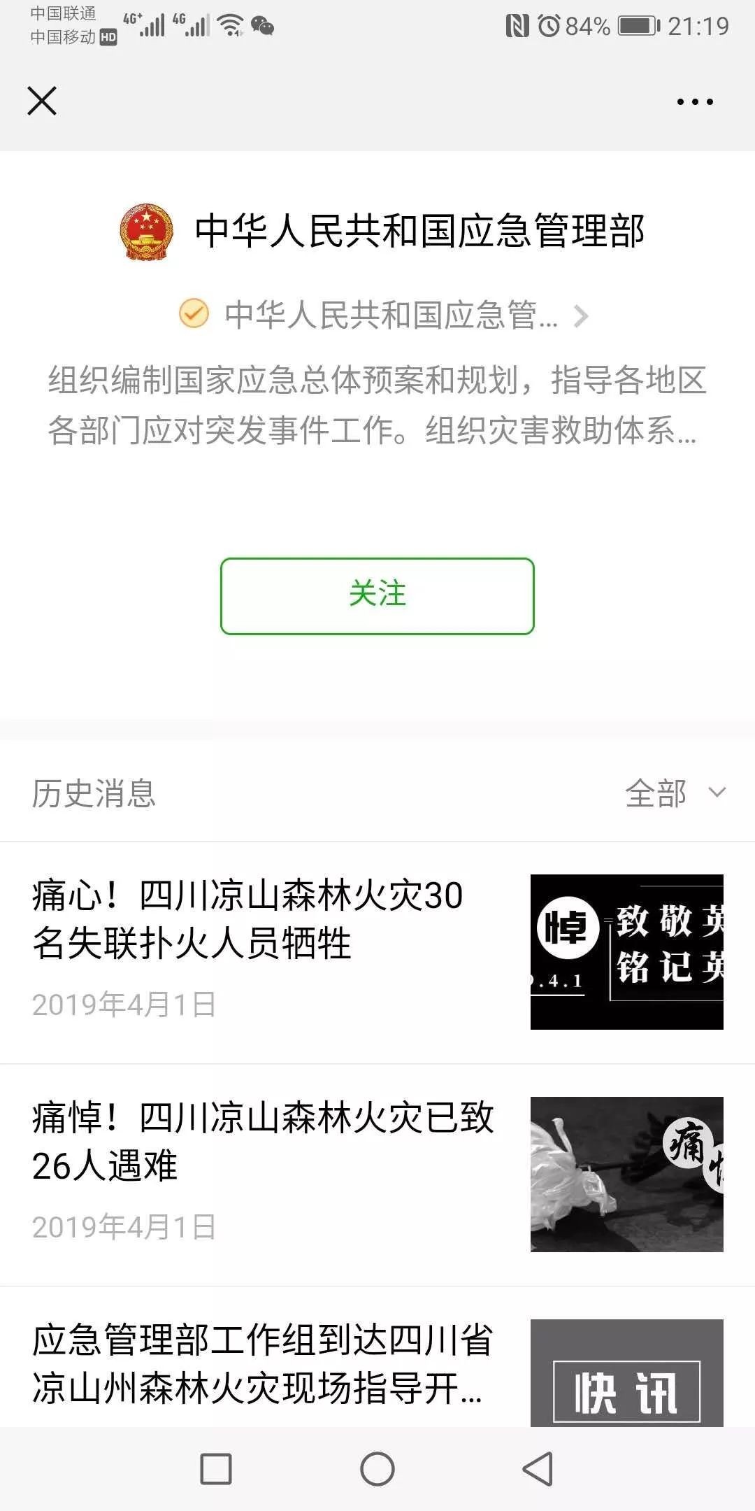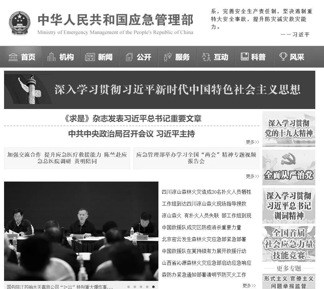 4月1日下午,应急管理部的官网和官方微信变成了黑白色。