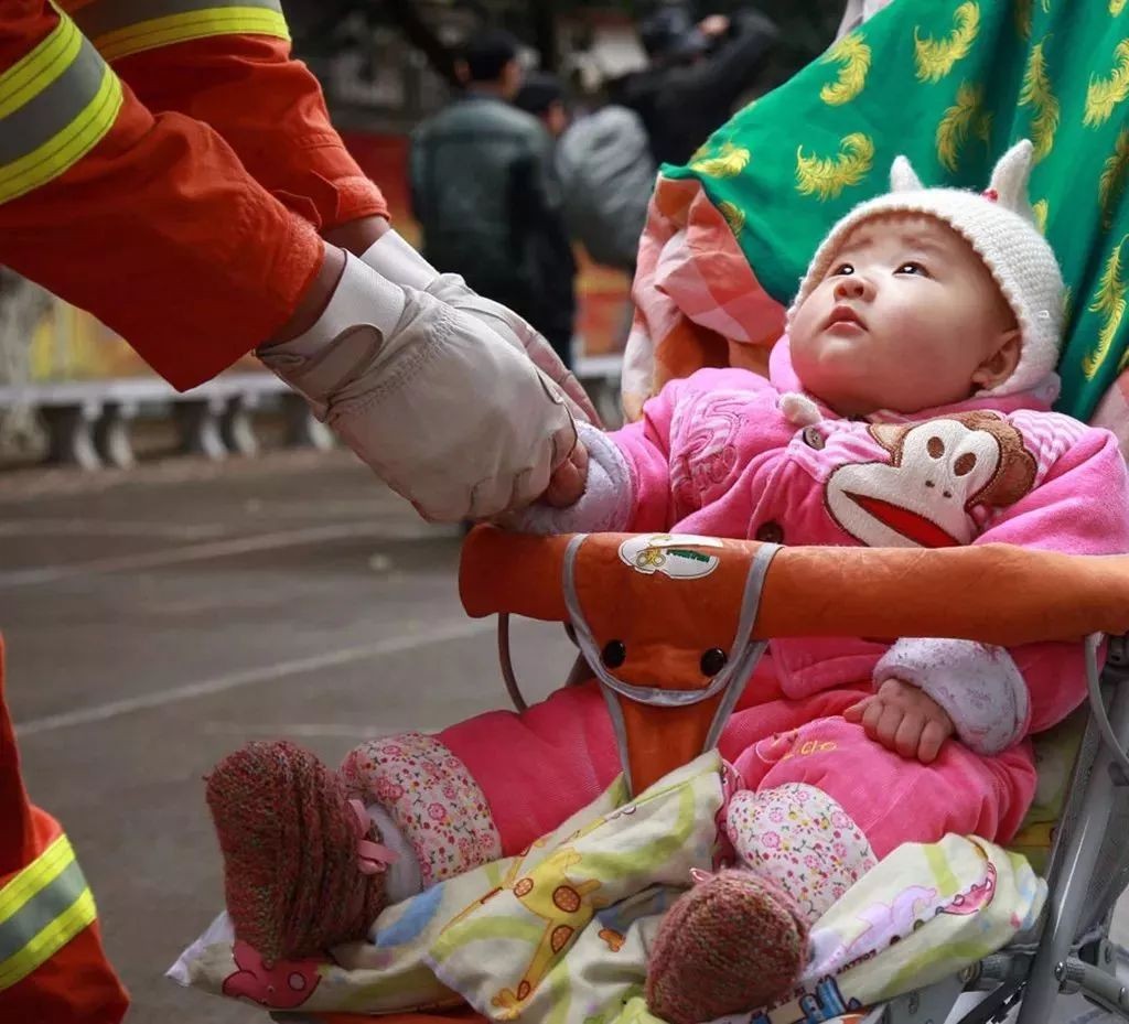消防员杨科璋转移一岁半的小女孩时,