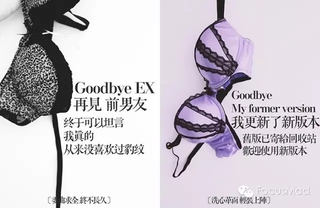 无论是前任男票还是旧Bra,谢谢你我曾坦诚相见,就此别过,再也不见。这广告做的多有女汉子们释然、独立的态度啊!