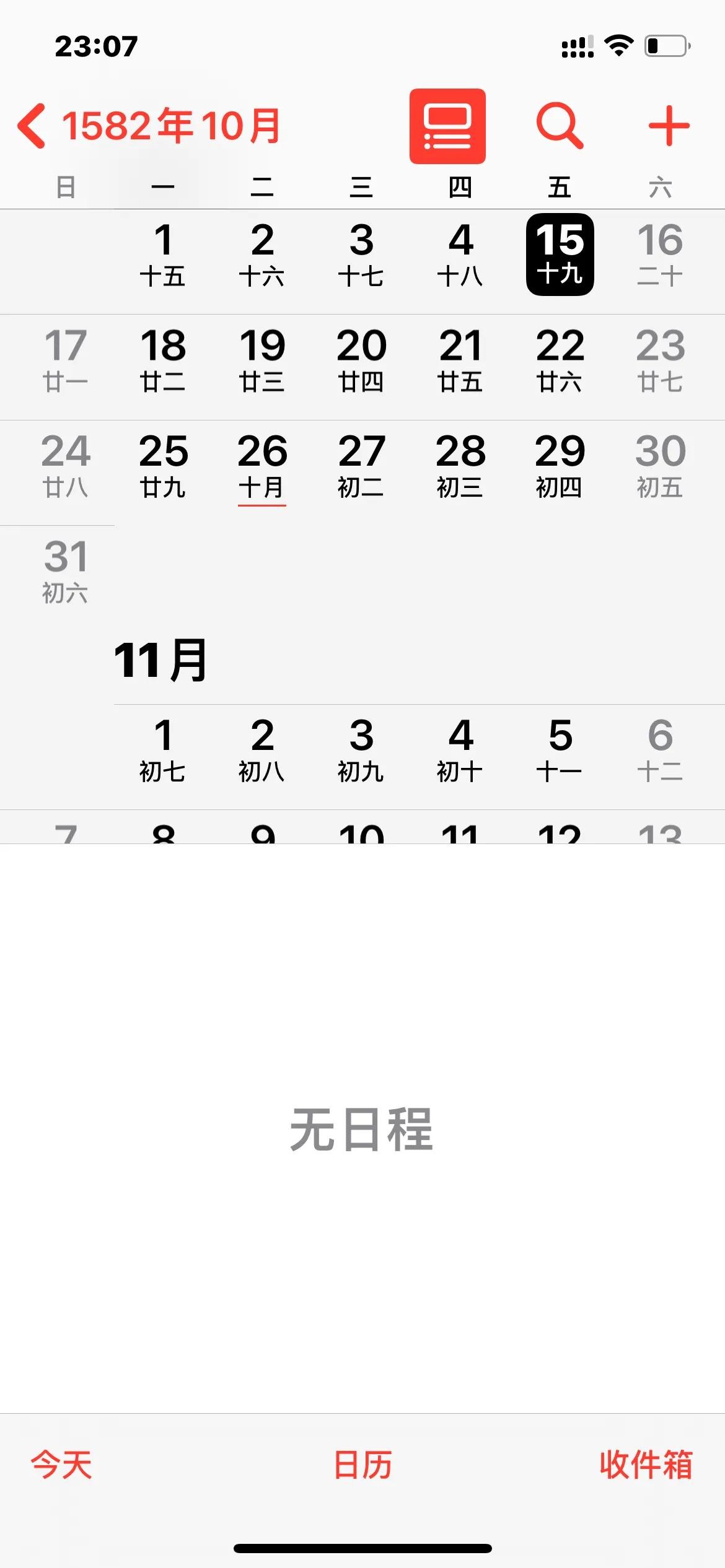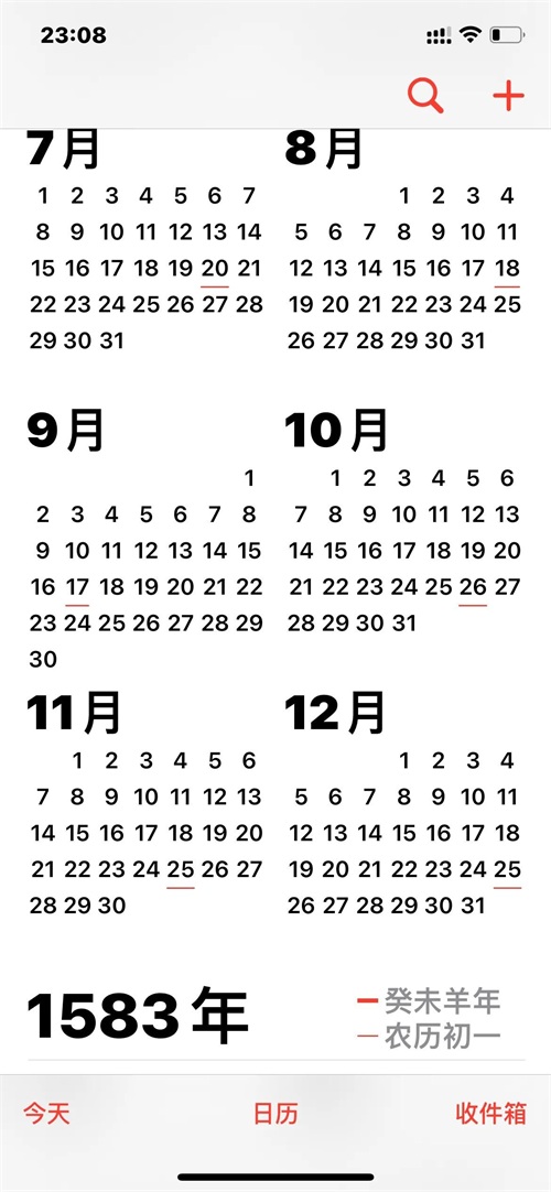 苹果手机日历上的1582年10月