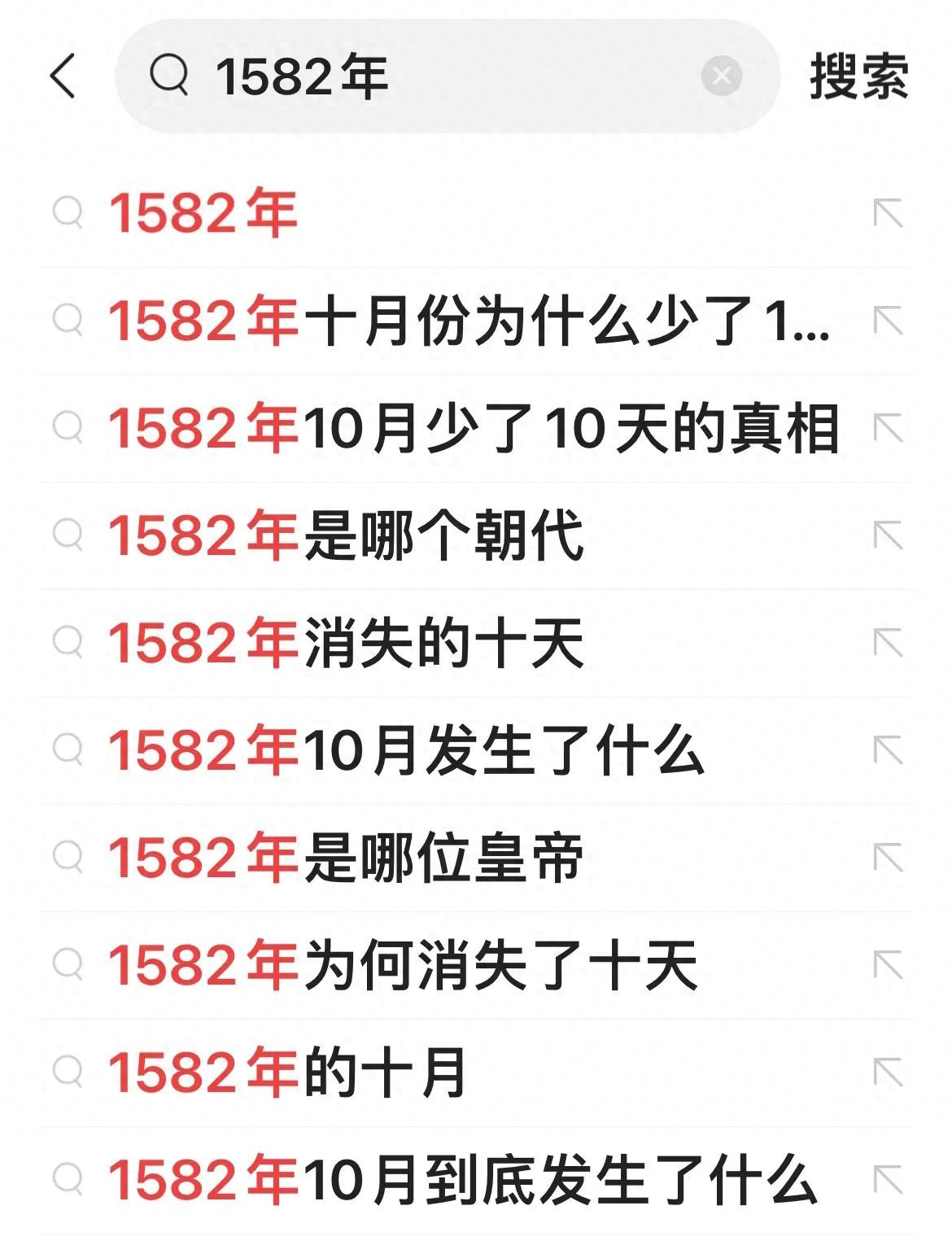 在今日头条上搜索“1582年”出现的内容