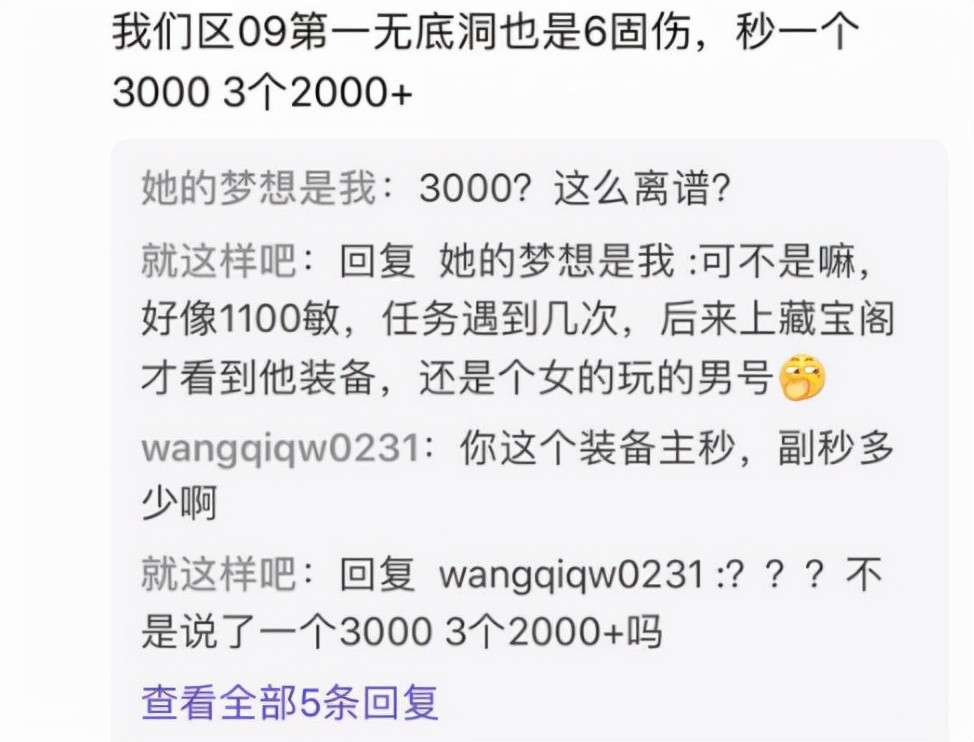 现在固伤门派中普陀山和无底洞的玩家是比较多的,因为他们秒的数据是比较高的,上面的这位玩家表示,他们区109级的第一无底洞带着六条固伤的灵饰,主秒3000副秒2000多,而且这个无底洞的敏捷属性都达到了1100,你们认为上面的这位玩家所说的是真的吗?小编感觉是真的,因为小编真的见过这样的无底洞,但是那样的无底洞就是109级固伤输出的极限了,没办法再继续提升了。