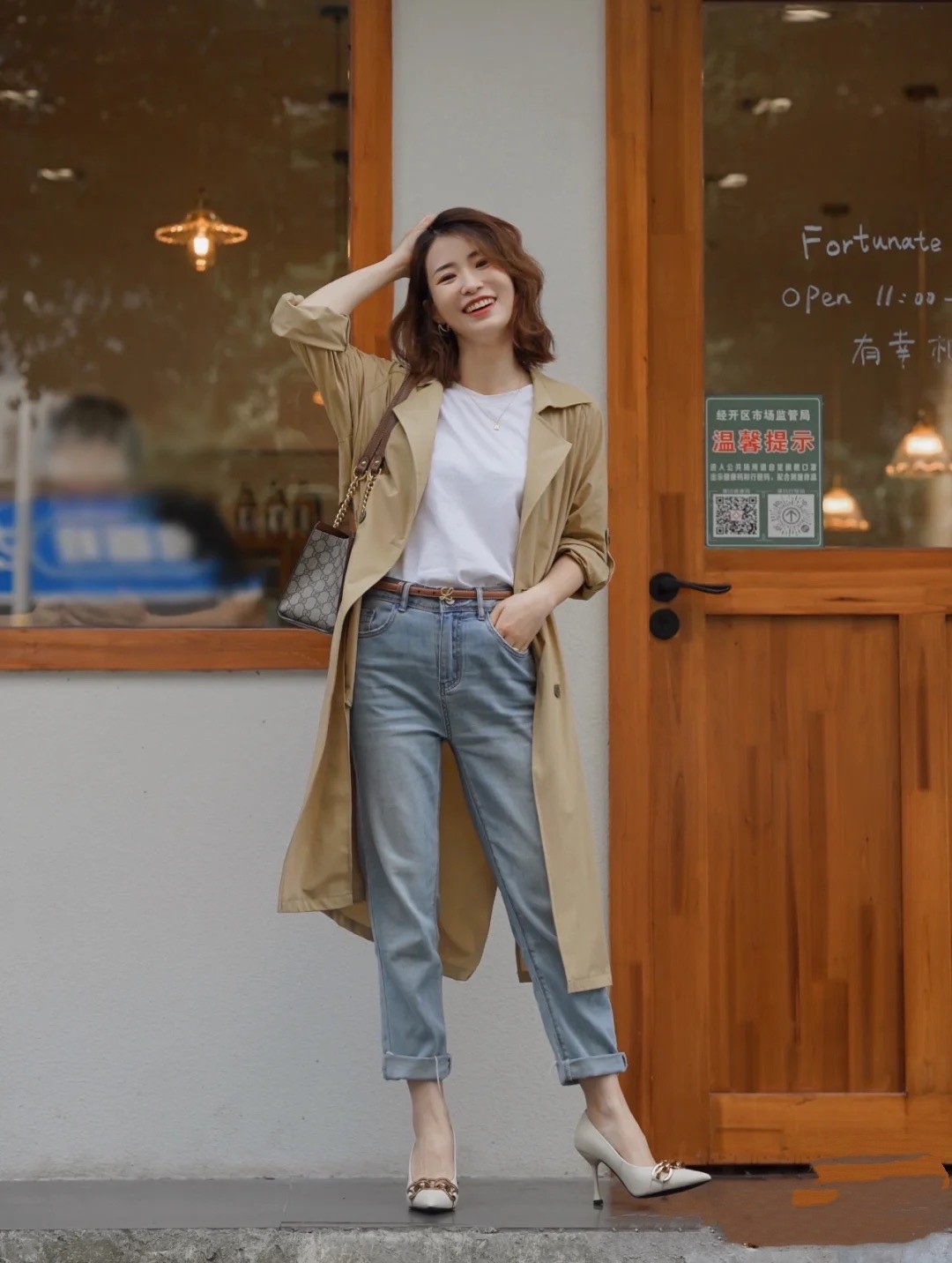 想要一种低调而又清爽的搭配,也可以选择米色系的高跟鞋。米色系的高跟鞋,带着一种清爽柔和的美感,配上水洗牛仔裤,形成了一种更加显瘦高挑的身材。卡其色的风衣,配上水洗蓝的牛仔裤,挽裤腿的穿法搭配上一双尖头的高跟鞋,整个人的气质清爽而又大方。