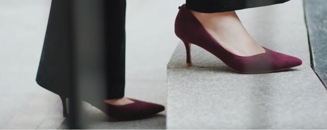 带着丝绒质感的酒红色高跟鞋,总有一种华贵之美。如果想要简约风的搭配,这种酒红色的高跟鞋就可以更好的驾驭。配上浅灰色的大衣,搭一双直筒的黑色裤子,整体风格简约而又高级,低调而又乏味。像这种简约设计的尖头高跟鞋,带着高级的丝绒质感,更适合一些气质华贵的女人。
