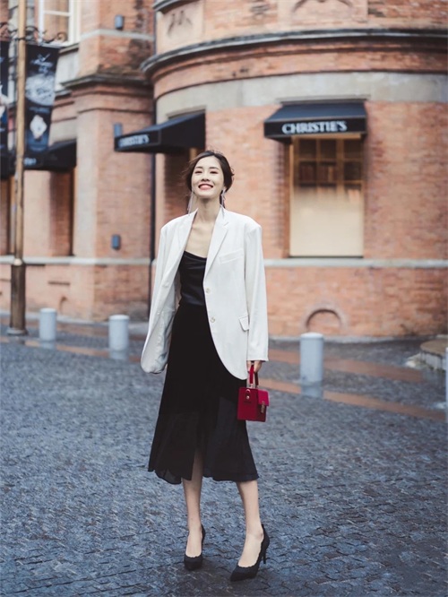 初秋的季节,如果你不知道穿什么。那么一件白色的休闲风夕张外套,配上黑色系的连衣裙,经典的黑白色搭配,高级而又内敛,低调又不沉闷。小腿的肌肤自然地裸露着,也不会觉得太过寒凉,毕竟初秋的天气也没有那么冷。双脚踩一双黑色高跟鞋,清清爽爽的样子,非常的利落大气。即便是简约风的高跟鞋,也能穿出高级范。