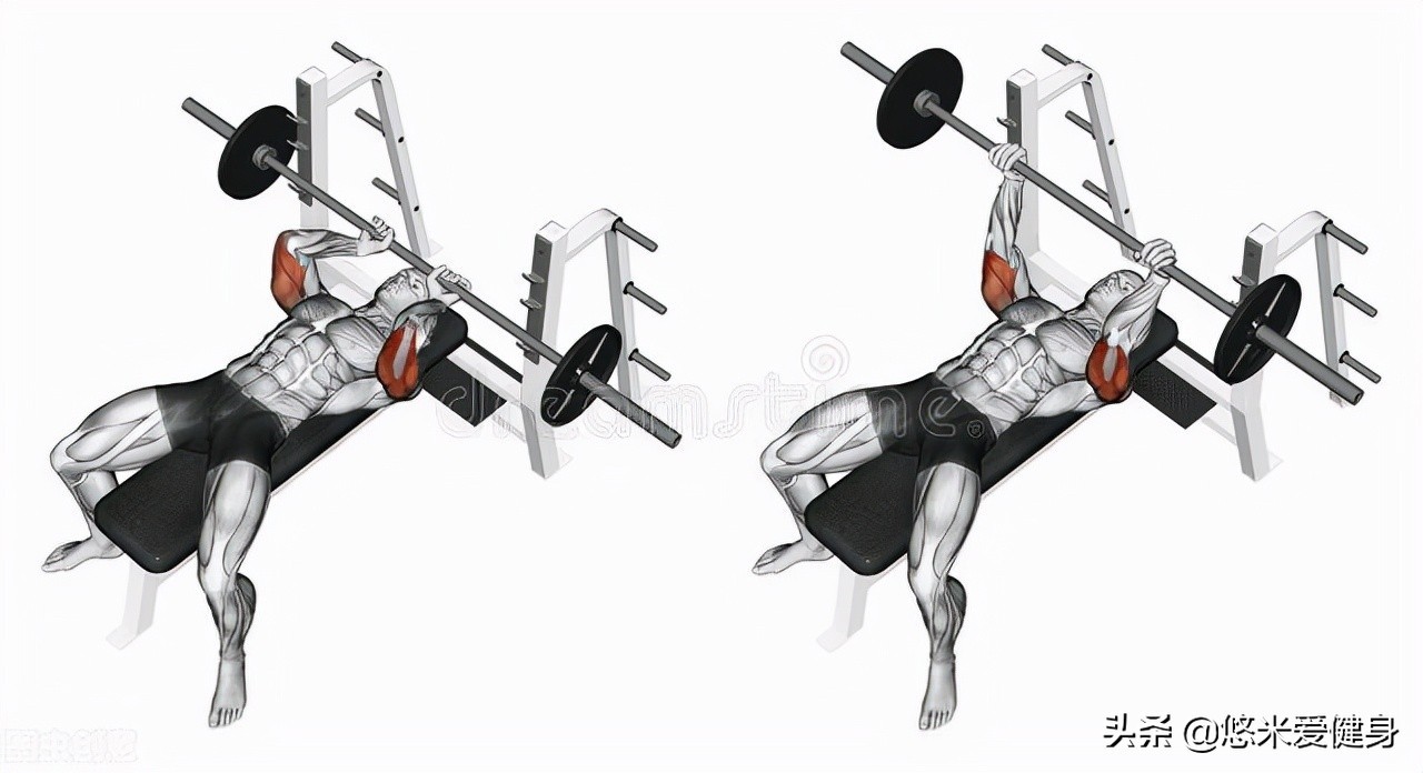 上面推荐的5个动作中,双杠臂屈伸属于热身动作,重点训练颈后哑铃臂屈伸和绳索下压,其次是仰卧杠铃臂屈伸,最后的凳上臂屈伸属于力竭动作。