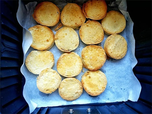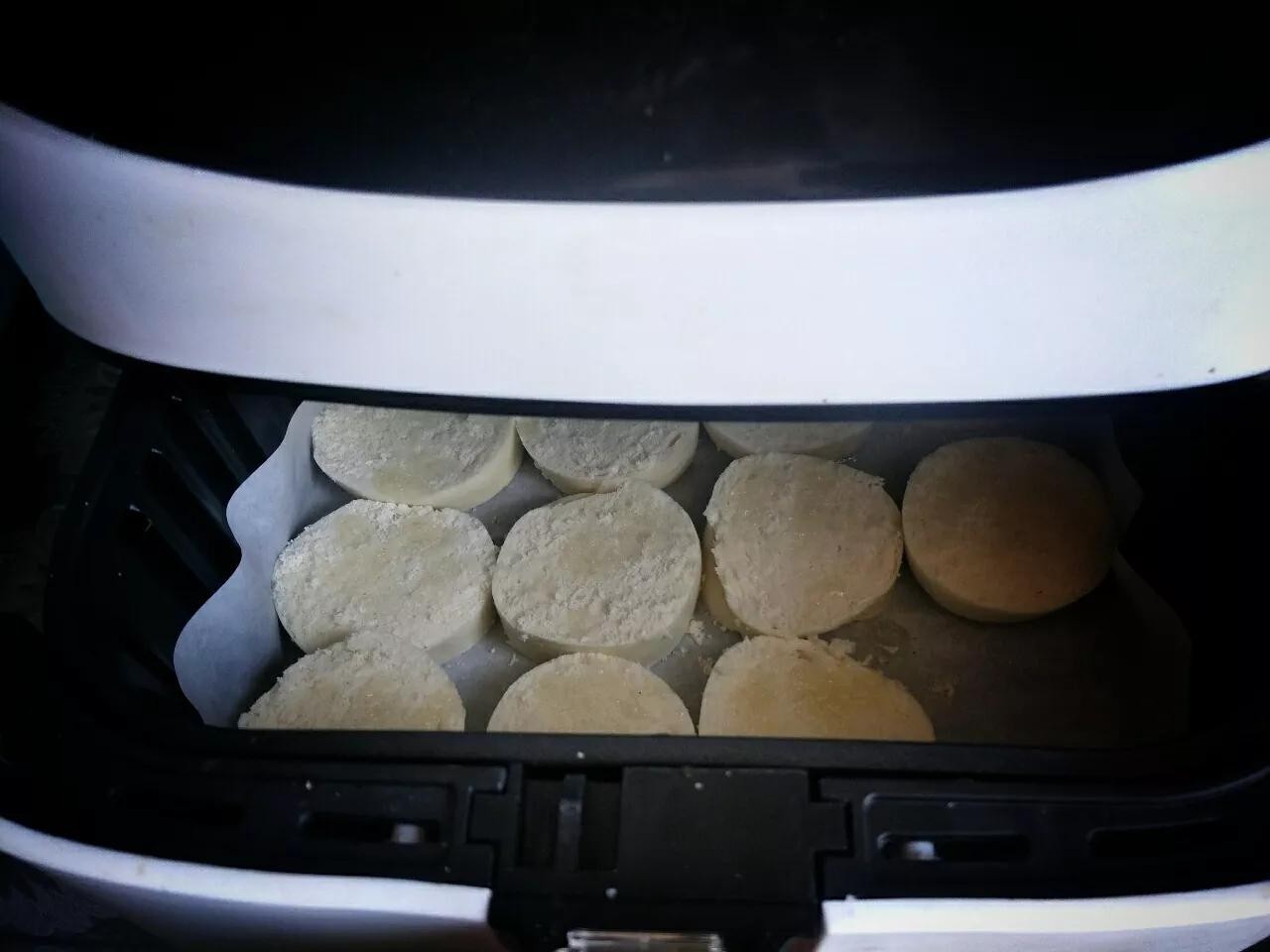 4. 放入空气炸锅中开180度十五分钟,具体的烘烤时间和烘烤温度根据自家空气炸锅的功率来决定,也可以放入烤箱上下火一百八十度烤15分钟左右。